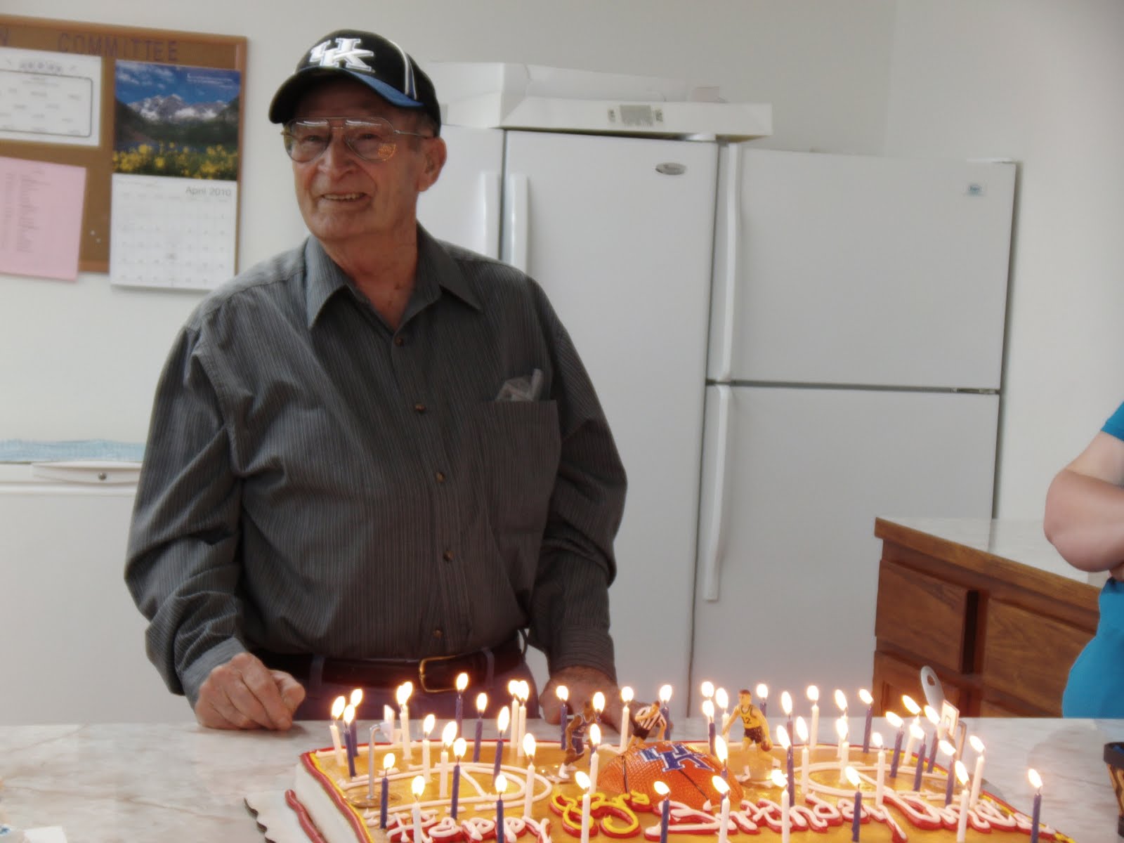 My Favorite UK Fan on his 83rd Birthday wearing his lucky hat. The UK logo was also on the cake.